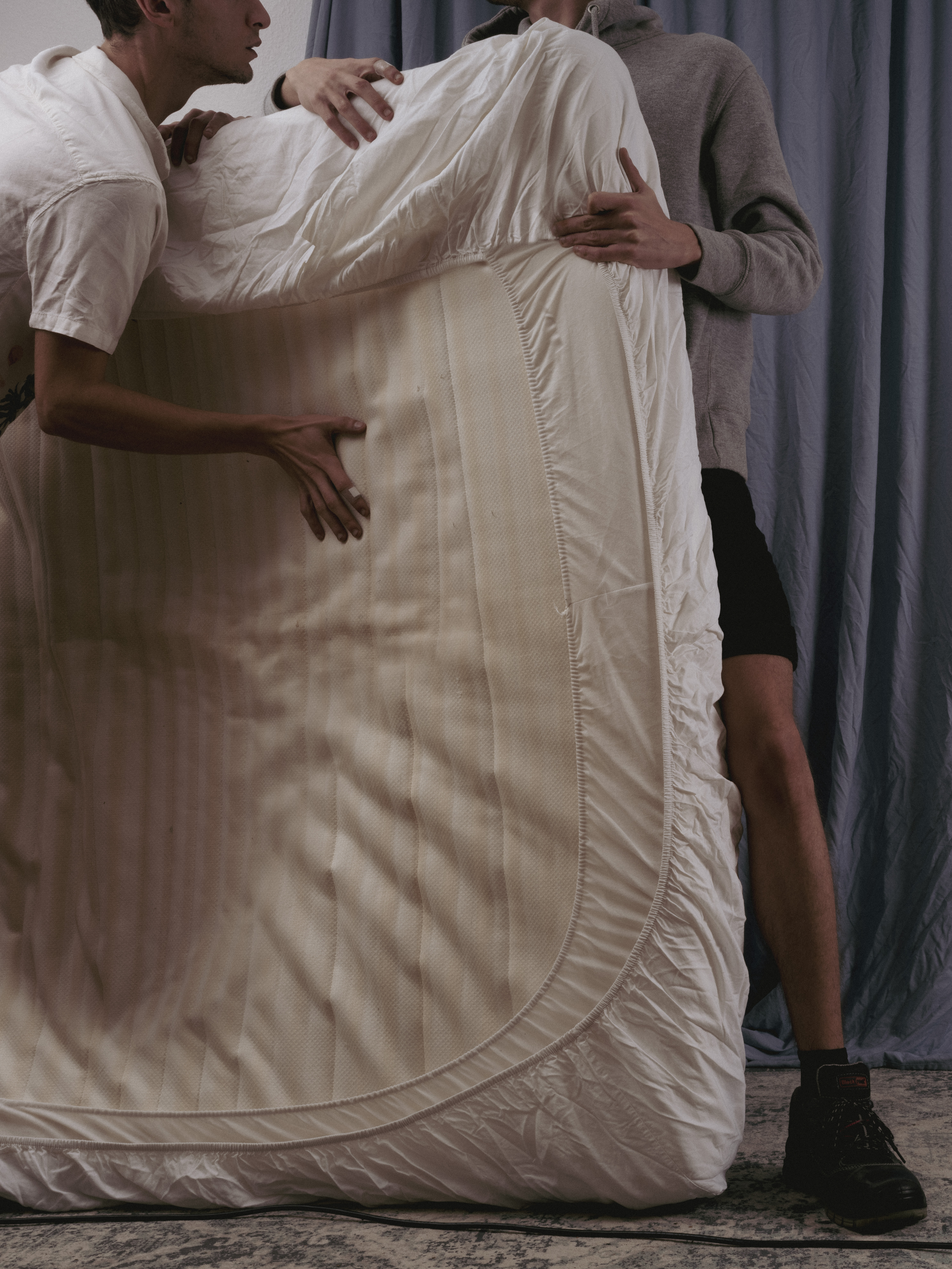 Matteo Angele appartiene a una nuova generazione di artisti queer, segnata da un contesto post-AIDS Crisis. Unendo fotografia e installazione, sviluppa una ricerca in cui l’immagine si fonde con lo spazio. Le sue opere assumono la forma di “immagini-sculture”, in cui le strutture e le superfici sono concepite in risposta alla fotografia, rivelando una tensione tra intimità, memoria e dolcezza, anche nelle iconografie più esplicite.